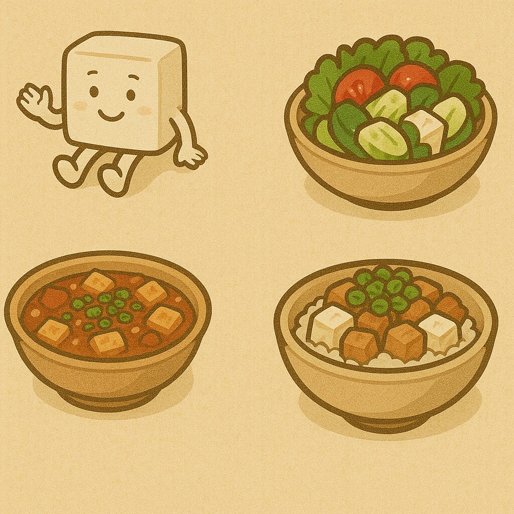 冷奴や豆腐丼、サラダ、麻婆豆腐でもOK。