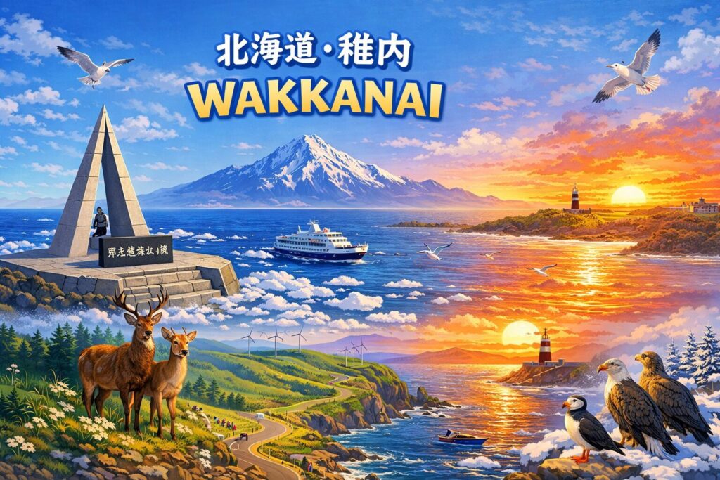 北海道の最北に位置する稚内市(わっかないし) は、遥か海の向こうに樺太(サハリン)の島影を望む国境の地であり、両側をオホーツク海と日本海に囲まれた自然豊かな風景が広がる場所です。