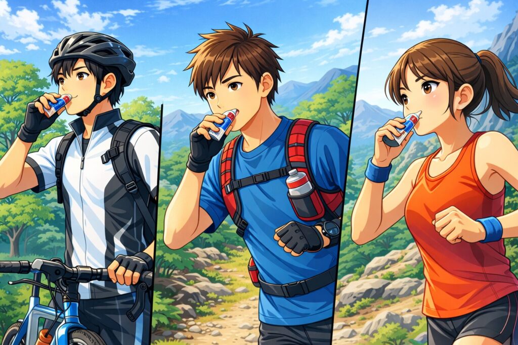 運動前はスタートに向けたエネルギーチャージ、運動中はハンガーノック(糖質切れ)対策、運動後は回復のための糖質補給として、目的に合わせてタイミングを使い分けやすいという特徴があります。
